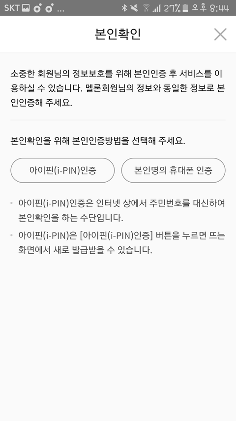 본인인증만 하고 갖다놓기 (멜론은 본인인증 한번하면