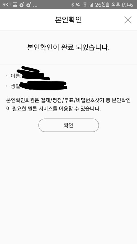8. 본인인증 끝나면 이렇게 나옴(확인 눌렀는데 ㅇㅅ 컴백땜에 사람 몰려서 접속이 제대로 안됌ㅠ)