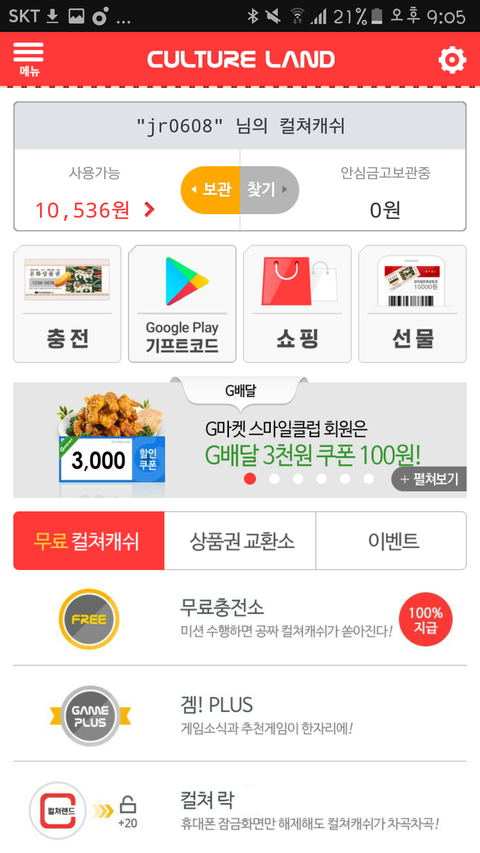2. 편의점(어디든 괜춘)에서 문화상품권 만원어치 주세요 하고 교환해온다(보통 편의점은 컬쳐랜드 꺼로 줌)