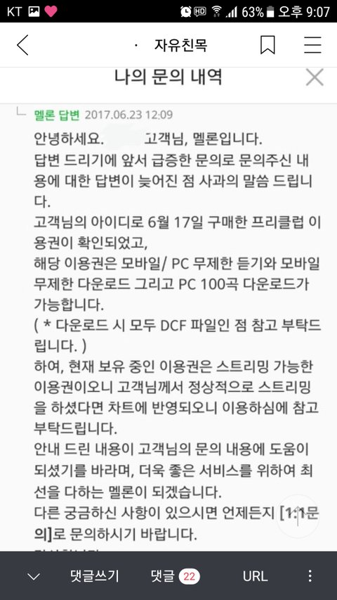 러브분이 멜론에 문의한거 답변 올라온거예요^^