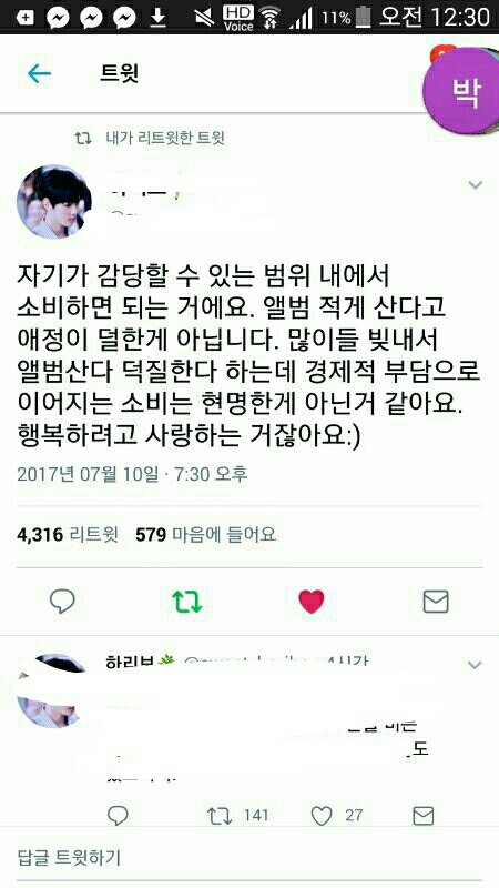 맞아 진짜.. 팬질하는거 자기 행복하려고 하는거 잖아. 자기 환경에 맞게 애들 사랑해주는게 맞는거라고 생각함. 누군 몇장샀는데 나는 이정도 샀는데.. 애들한테 너무 미안하다 ㅜㅜ 이런생각 안 가졌으면.. 물론 불다하고 그런건 예외. 사랑한다면 불다 하지마라