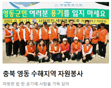 지난 2002년 충북 영동지역 태풍으로인한 수해입은 주민들을 찾아가