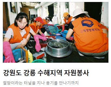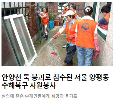 실의에 빠진 수재민들에게 희망과 용기를 전해드린