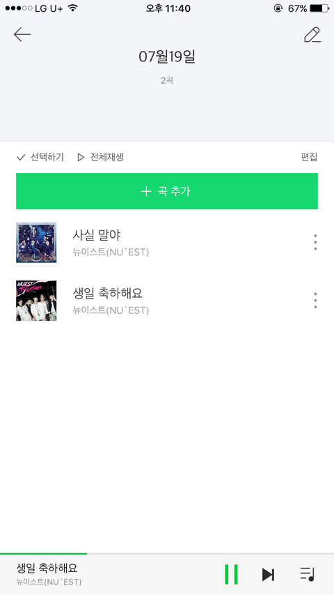 재생목록뭔지몰라서 ㄴㅁ 는 생일축하해요랑 1곡 총2곡만담고 전체재생 해놨어