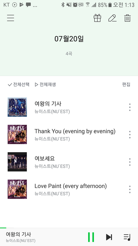 ㄴㅇㅂ뮤직 이용하라고해서 급하게 결제하고 전체재생 눌러서 노래안끊기게 틀고있는데 이렇게하는거맞아??????왜나만모양이다르지......?...