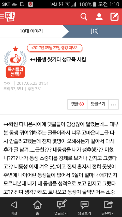 댓글 반응들......정말 지금 봐도 너무 화가나는데 정말 제가 제 동생을 성추행 한거라고 볼수 있는건가요??
