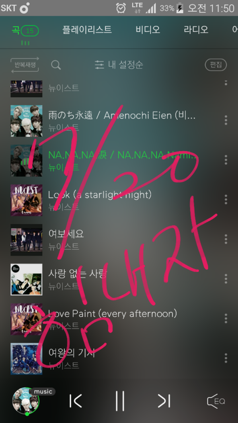 열심히 다운받고 재생목록 수정하고 생노동한 후에 애들 음원 차트인 하는거 보니까 넘 씐나는거야! ~~^^