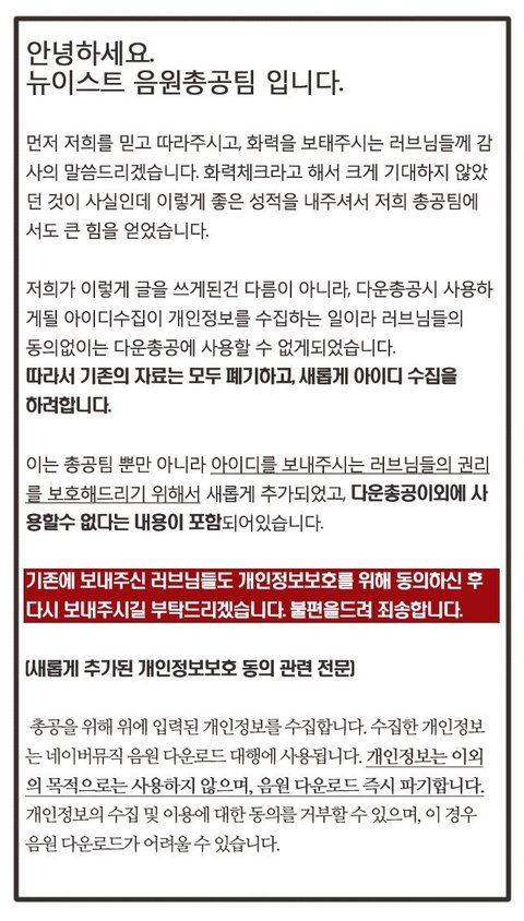 음원총공 긴급공지! (짹펌)
