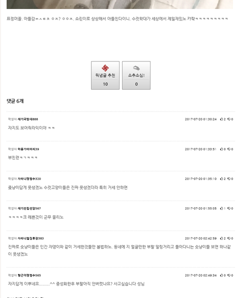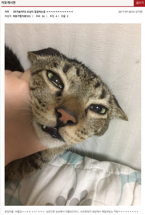 냥이 목 꽉 쪼른거 사진 올린거