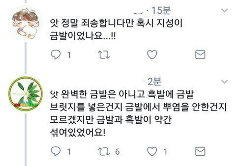 ++ 금발에서 흑발덮은거라 색빠졌다는 말이 있음