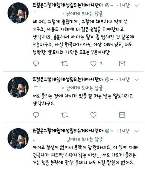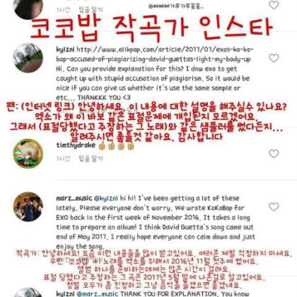 그리고 논란이 되었던 엑소 코코밥 작곡가의 피드백↓