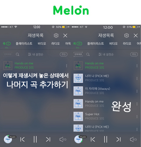 ★현재 재생중인 곡 다음에 추가★