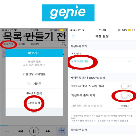 <<<<Genie도 같은 방법으로!>>>>
