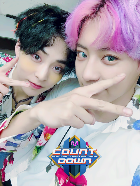 (시우민)엠카 대기실에서 찬열이랑 셀카