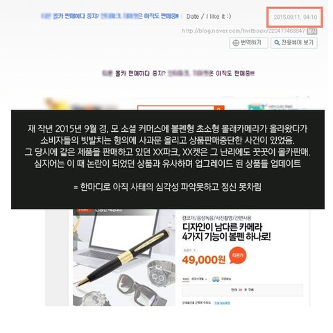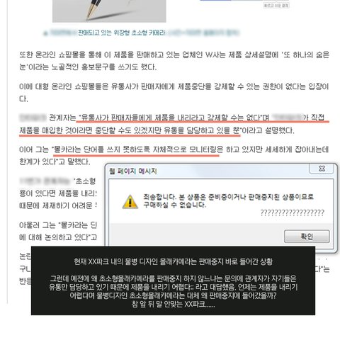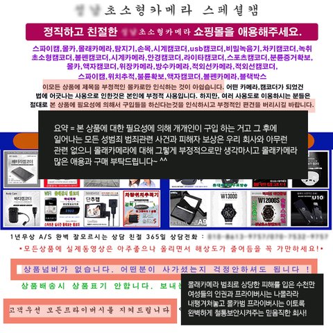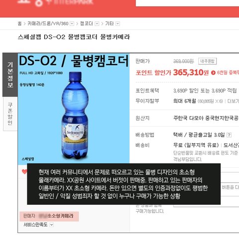 하지만 네이트 판 내에서 가장 확산력이 있고 영향력이 있는 카테고리이며, 동시에 이 게시글에 가장 민감하게 반응하실 여성분들이 많이 계시다는 걸 익히 들어 찾아오게 되었습니다. 다름이 아니라 이 게시글은 현재 여러 커뮤니티들 사이에서 조용하게 퍼지고 있는 물병형 디자인 초소형 몰래카메라를 XX파X에서 버젓이 판매하고 있다는 사실을 알려드리며, 더불어 힘을 합쳐 판매중단을 요구해 주셨으면 하는 바람으로 작성했습니다.
