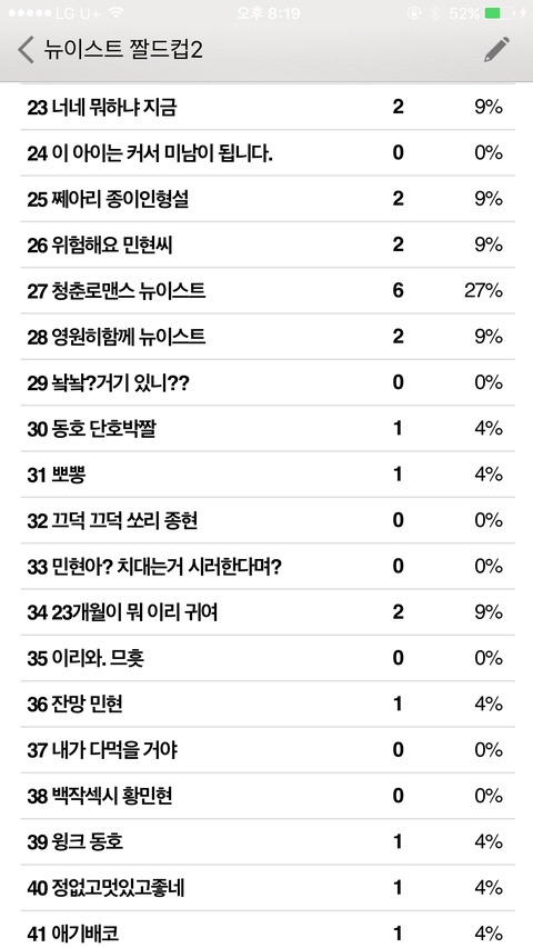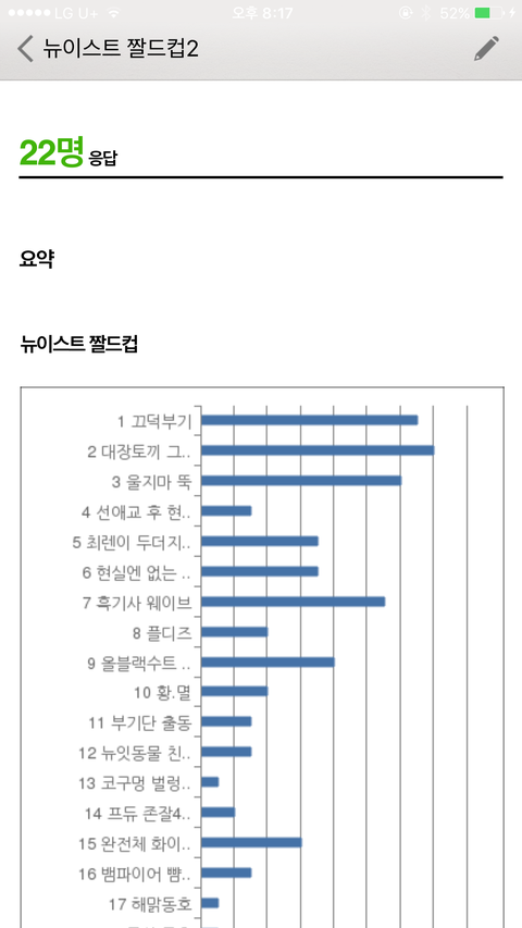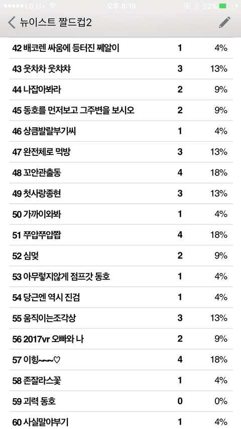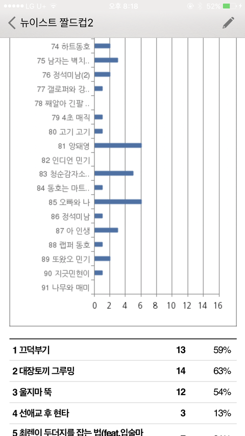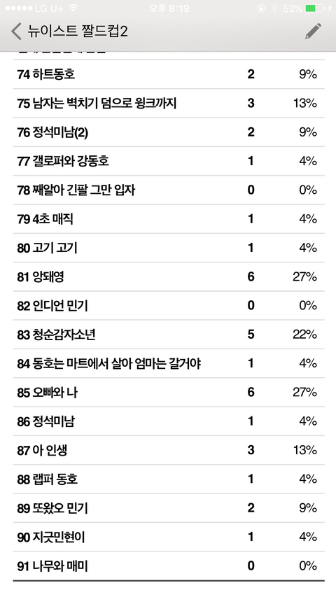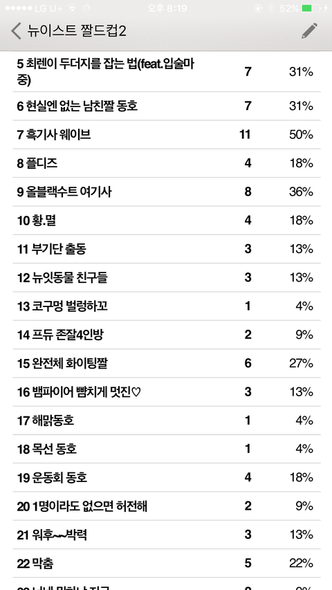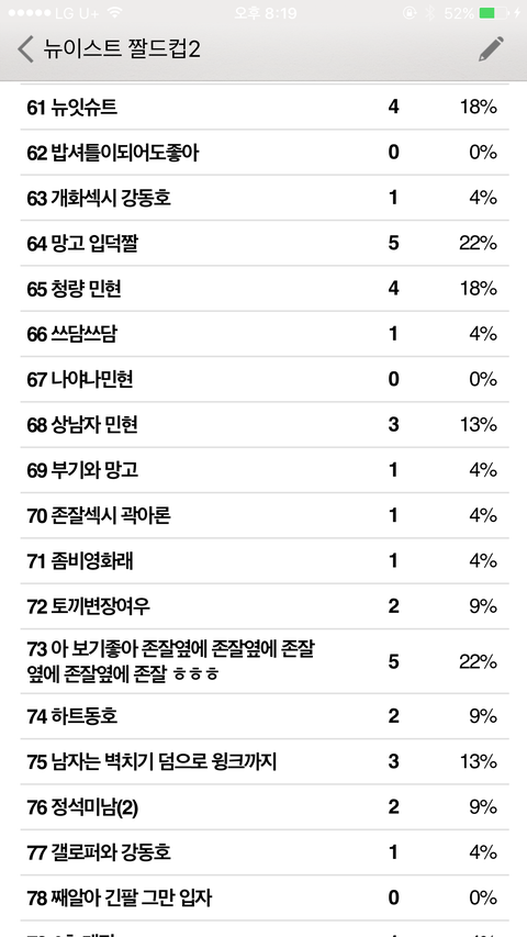 짤드컵 초대데 밖이라서 캡처본으로 중간 집계상황 보여줄게