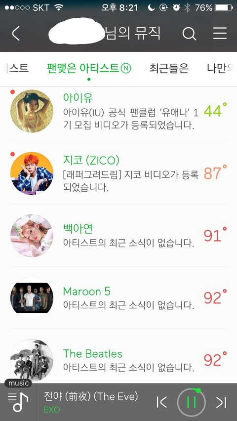 엑소 노래가 1등이여서 들어봤는데 몇번 들으니 계속 맴돌아요ㅠㅠ 다른 노래들도 좋더라구요 전 기억을 걷는 밤이랑 전야가 취향이네요..ㅎㅎ
