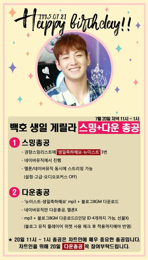 동호 생일 ㄴㅇㅂ뮤직 총공 11시부터 새벽 1시까지에요.