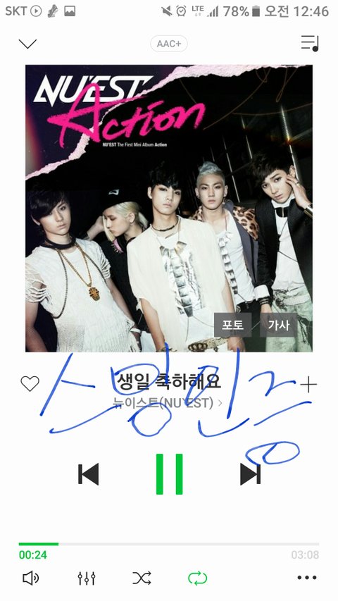 뉴이스트 노래가 순위가 엄청높아져있어서