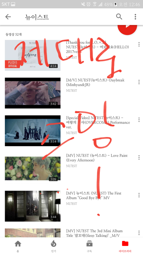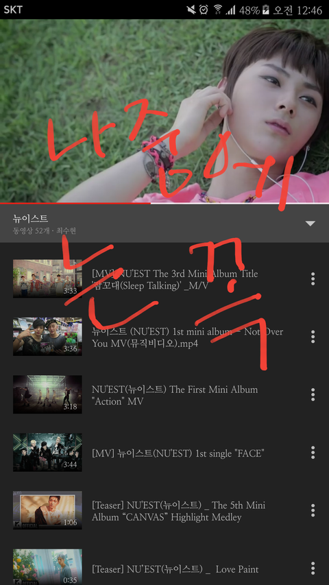 안년 우리 사랑둥이 러브들 난 아직 미성년자야... 나이도 그렇고 연예인 좋아하는 건 처음이라 이쪽 지식이 전혀 없어서 난 서양수박 같은 걸로 스밍도 못돌리고 그나마 너튜부로 하루종일 재생목록 무한반복 하는게 다야... 그래서 뭔가 열심히 스밍 돌리는 다른 러브들한테도 미안하고 뉴이스트한테도 미안하고 너무 속상해ㅠㅠ 그래도 우리 러브들 스밍 덕분에1위한 거 축하하고 동호 생일도 너무 축하해 제대로 된 스밍을 돌릴 수 있을 그 날까지... 아 너튜브 스밍 인증 이렇게 하는게 맞는건지도 모르겠다...