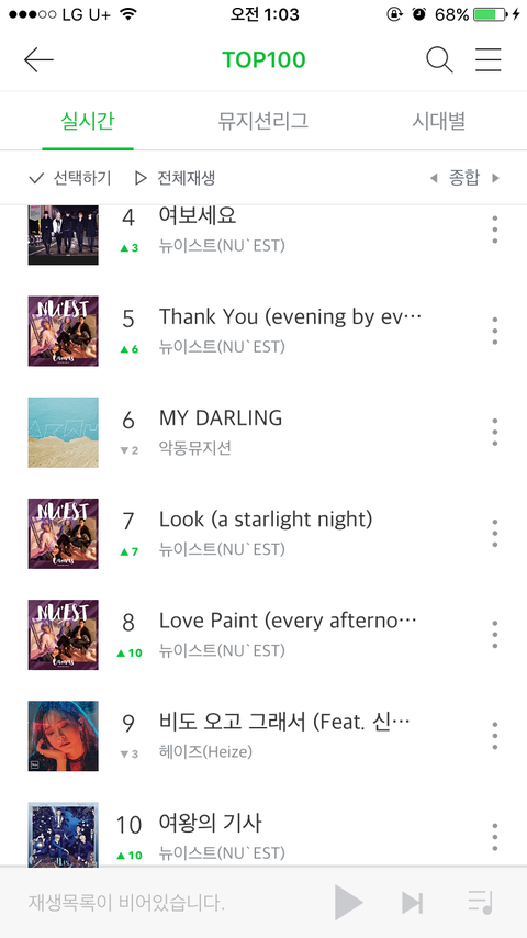 초록창 다른곡도 순위 상위권이야ㅠㅠ