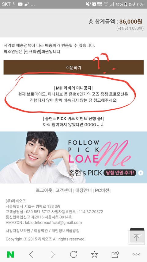 장바구니에서 결제창으로 넘어가는 페이지에 저렇게 나오는데 혹시 다른 러브들도 저런 말 뜨는지 궁금해!