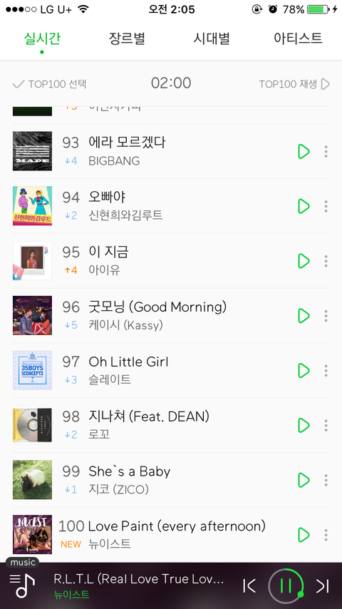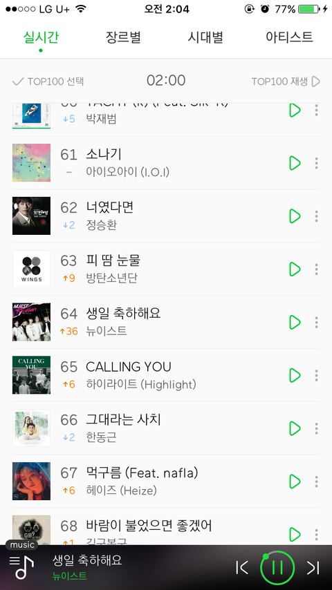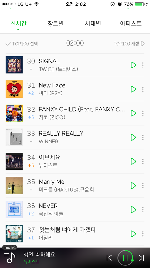 생일축하해요도 36계단 상승 ㅠㅠ 러브페인트도 차트인!! 좋아 ❤️