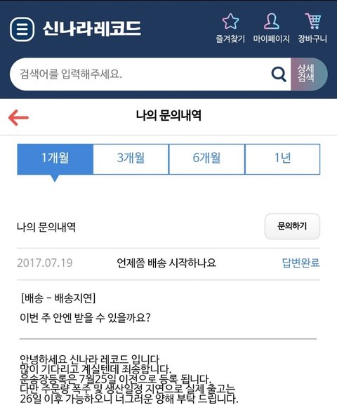 난이미 배송 중임