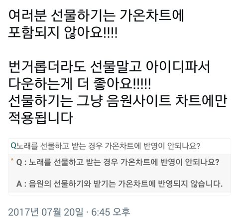 야 참고로 음원선물 개온반영 안됨