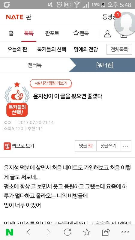 그래서 워너블들이 팬톡에서 글 쓰자고 그러는 거구요