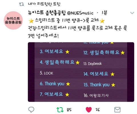 리스트 11번 땡큐를 룩으로 변경!!