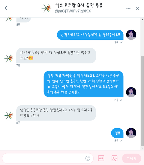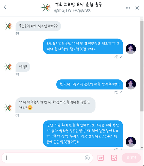 이런식으로 보냈거든 근데 그래서 결국 ㄴㅇㅅㅌ 음원 공개가 언제야