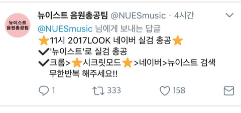 러브들아 실시간 검색어 네이버에서 총공도 있는거 알지??? 지금 뉴이스트 20에도 안들어있어ㅠㅠ꼭꼭 도와줘ㅠㅠㅠ그렇게 해서 유입되는 머글들 조회수도 정말 많을거야ㅠㅠㅠ우리 뉴둥이들 조회수많게 해 줘야지!!!