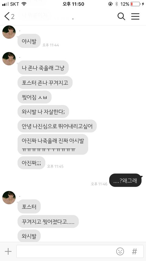 포스터 끝에 조금찢어졌다고 그러는듯.... 계속 나한테 자살한다그러고 죽고싶다함 뭐라해야돼