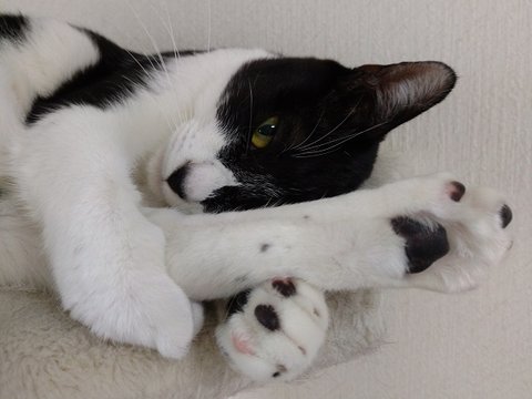 처음보는 고양이죠? 에디의 형제 고양이예요. 에디와 함께 보호된 후에 입양됐었는데 안타까운 사연이 있어서 다시 앞집 아주머니 댁으로 돌아오게 됐어요. 겁이 많은 친구라 입양간 집에서 계속 사람을 피해다녔나봐요. 어쩌다 마주치면 하악대고. 일년 내내... 결국 파양이 돼서 앞집 아주머니 댁으로 돌아오게 됐는데, 고양이를 전달 받는 날 보니 고양이가 너무 말라있더래요. 이유를 물어보니까 하악댈 때마다 교육하늘라고 밥을 안 줬다고...나쁜 의도로 그런 건 아니고 고양이에 대한 지식이 너무 없어서 착한 행동을 할 때마다 밥을 주면 고양이가 조금이라도 빨리 순화될 줄 알았다고....ㅠ.ㅠ 결과적으로 그 분의 자의적 교육(?)때문에 고양이는 일 년 내내 학대아닌 학대를 받으면서 사람에 대한 불신만 키우게 됐어요. 사람을 너무 무서워해서 다시 입양을 갈 수 있을지 모르겠을 정도라네요. 너무 안타까워요. 아주머니의 사랑을 받으면서 조금씩 좋아지겠죠? 고양이가 마음을 허락해줄 때까지 기다려줄 수 있는 좋은 분을 만날 수 있었으면 좋겠어요ㅠ.ㅠ 꼭 그럴 수 있기를 마음으로 빌어주세요. 에디의 형제라서 더 마음이 쓰이네요.