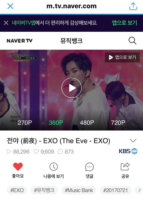 전야 뮤뱅 네이버캐스트 시우민썸네일 ㄹㅇ 이쁨 ㅋㅋ