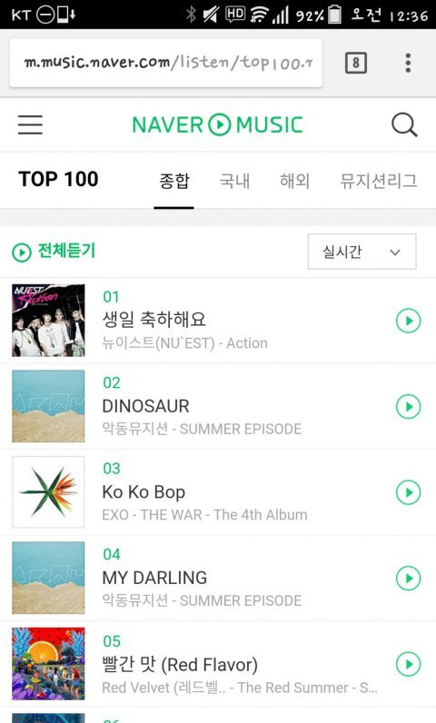 생일 축하해요 네이버 뮤직1위