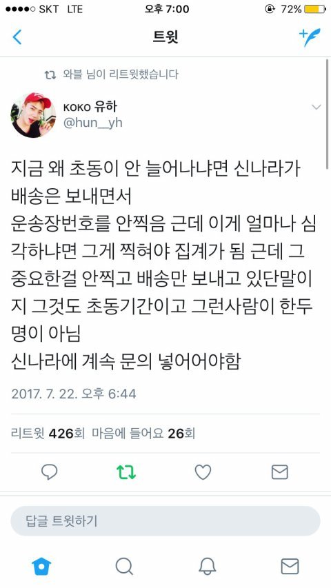 이미배송한걸 찍을리가없잔ㄹ아개신발련들이시빨련글아 조카어캄__야 아 퉥플이 말해서 다같이 흥나라애 전화해야하냐