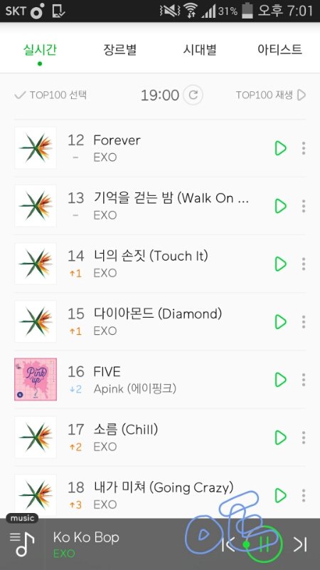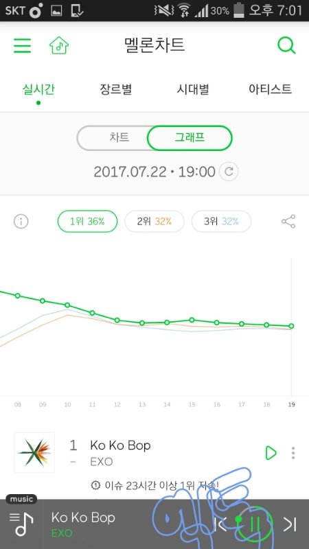 원래 평일이면 지금이 제일 위험한 시간대인데 7시차트에서 점유율 차이 벌렸고 수록곡도 올라옴