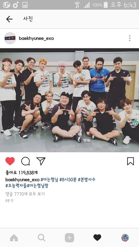 백현이가 희철님 인스타 좋아요ㅜㅜ