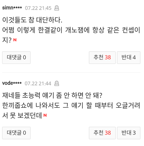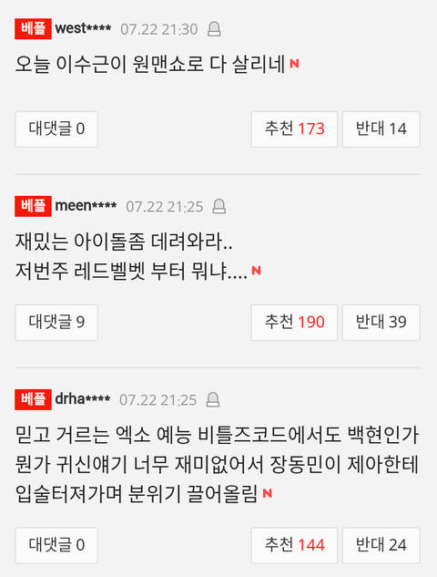 오늘 아는형님 기사 댓글들