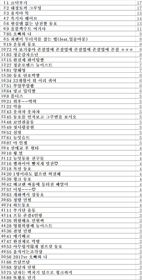 금방 54개 투표폼과 짤과 같이올게 조금있다봐