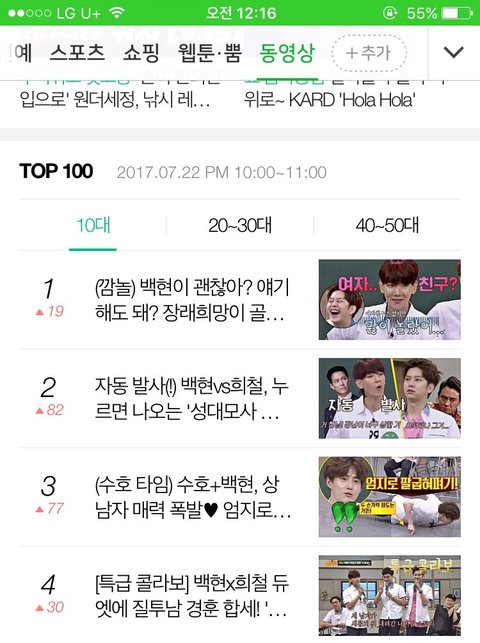백현 인기 짱짱이네! 네이버 동영상 1위!