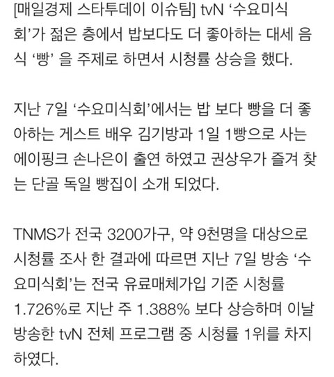 요번컴백때 나온수요미식회도 이건 음식맛집 예능 거의시청률 1프로예능