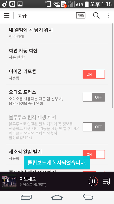 ㅂㅅ 들어가서 설정>고급>오디오포커스 off 하면 끝!