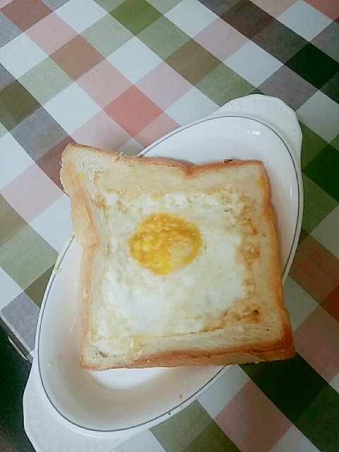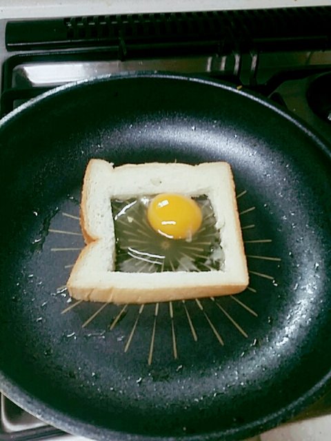 3.속이 빈 식빵에 계란을 깨서 넣자
