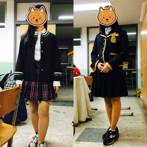 앙드레 김 디자이너님이 제작하셨다는 우리 학교 교복이야ㅎㅎ 둘 다 동복인데 왼쪽은 동양의 미를 살렸다며..ㅋㅋㅋoriental, 오른쪽은 western이라고 불러. 날마다 드레스코드가 정해져 있어서 해당하는 교복을 입고 등교하면 돼. 여름에도 마찬가지로 safari, western의 두 가지 종류가 있어! 동복은 교복 코트도 있는데 이 사진엔 없당.. 내가 입은 사진을 올리려다가 누가 알아볼까 겁나서 사진은 우리 학교 TONG 기자단 친구들이 올려준 기사 사진으로 대체해ㅎㅎ...