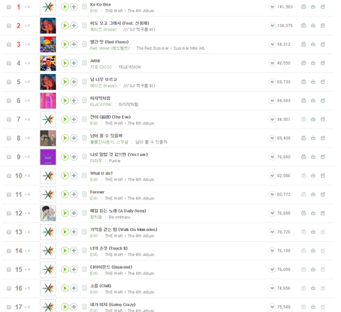 엑소 수록곡 낮에도 10위 권에서 줄세우고 있음ㅋㅋㅋㅋㅋ