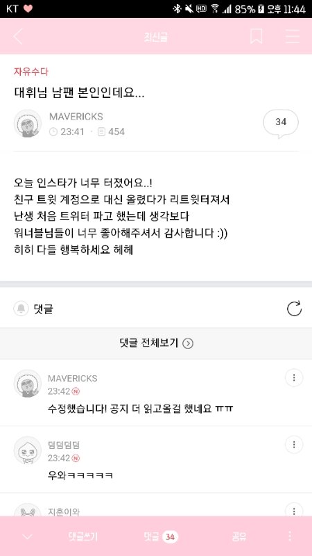0카에 대휘남팬 출현함
