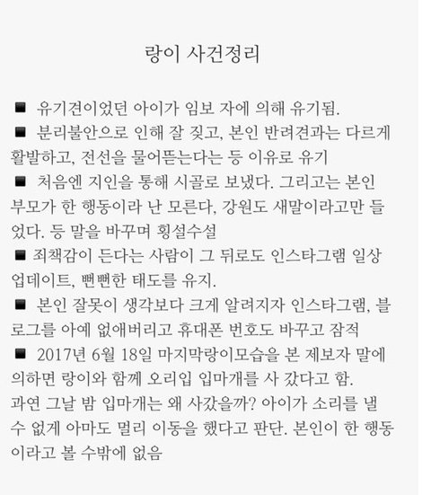 그리고 입마개를 본인이 직접 샀다는 건 부모님이 랑이를 데려갔을지언정 모든 사실을 본인도 알고 있었다고 추정됩니다.